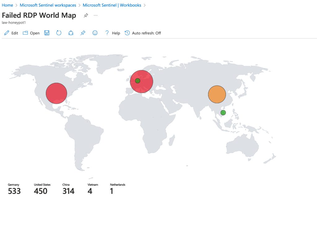 This documentation outlines the key steps to set up Azure Sentinel for monitoring the honeypot, extracting geolocation data from live attacks, and visualizing the results.