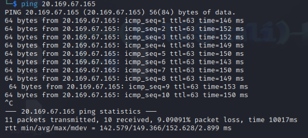 First, I pinged the IP address from my Linux machine, and the connection timed out.